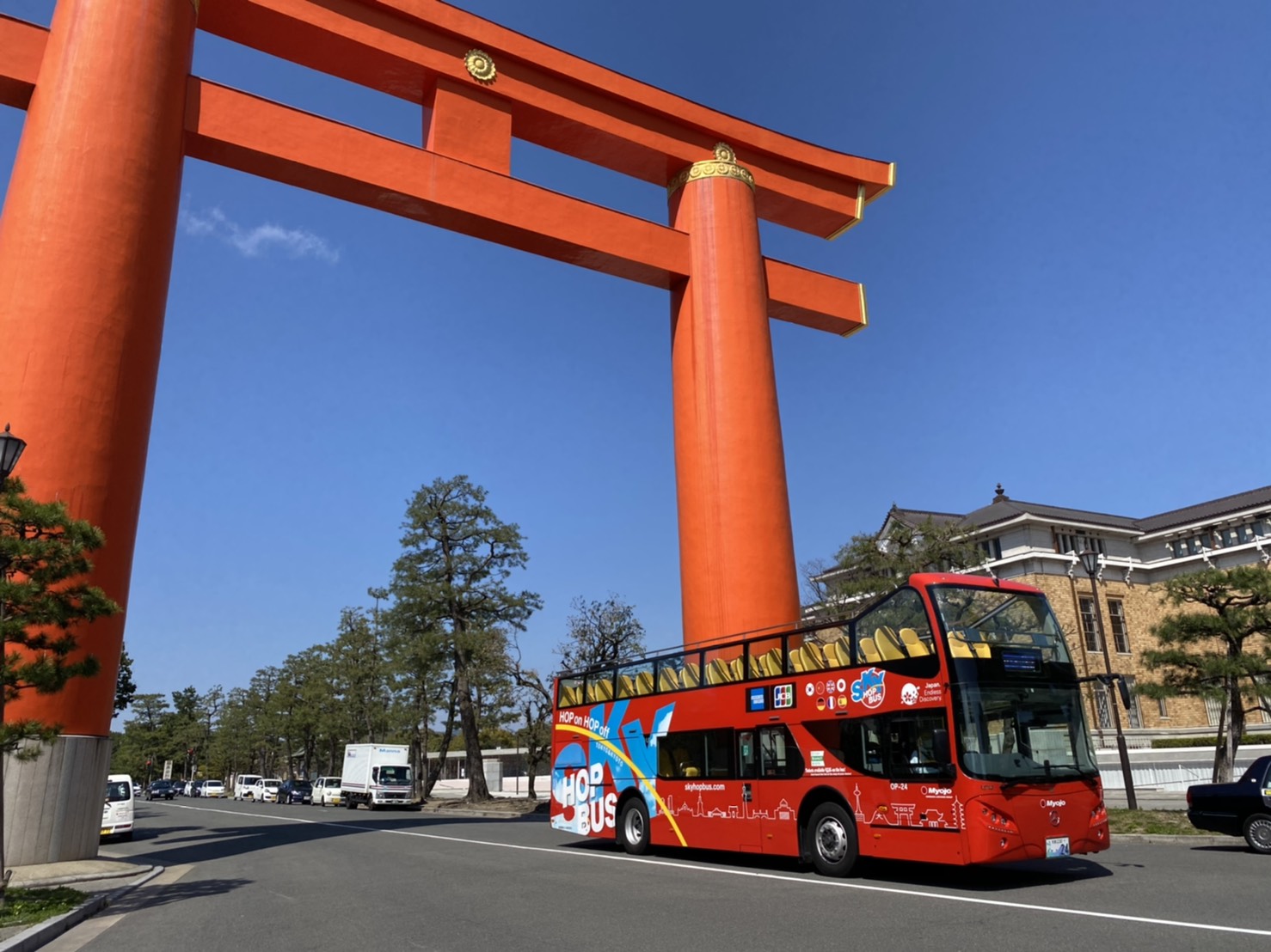 | コース詳細 | JR京都駅烏丸口→京都水族館→梅小路公園→渡月橋→嵐山(下車/90分)→東映太秦映画村(下車/120分)→冷泉家→京都御苑→賀茂大橋(大文字山を望む)→琵琶湖疏水→平安神宮(下車/40分)→平安神宮大鳥居→青蓮院→知恩院三門→祇園バス停(降車可能)→八坂神社→京都南座→京都タワー→JR京都駅烏丸口 |